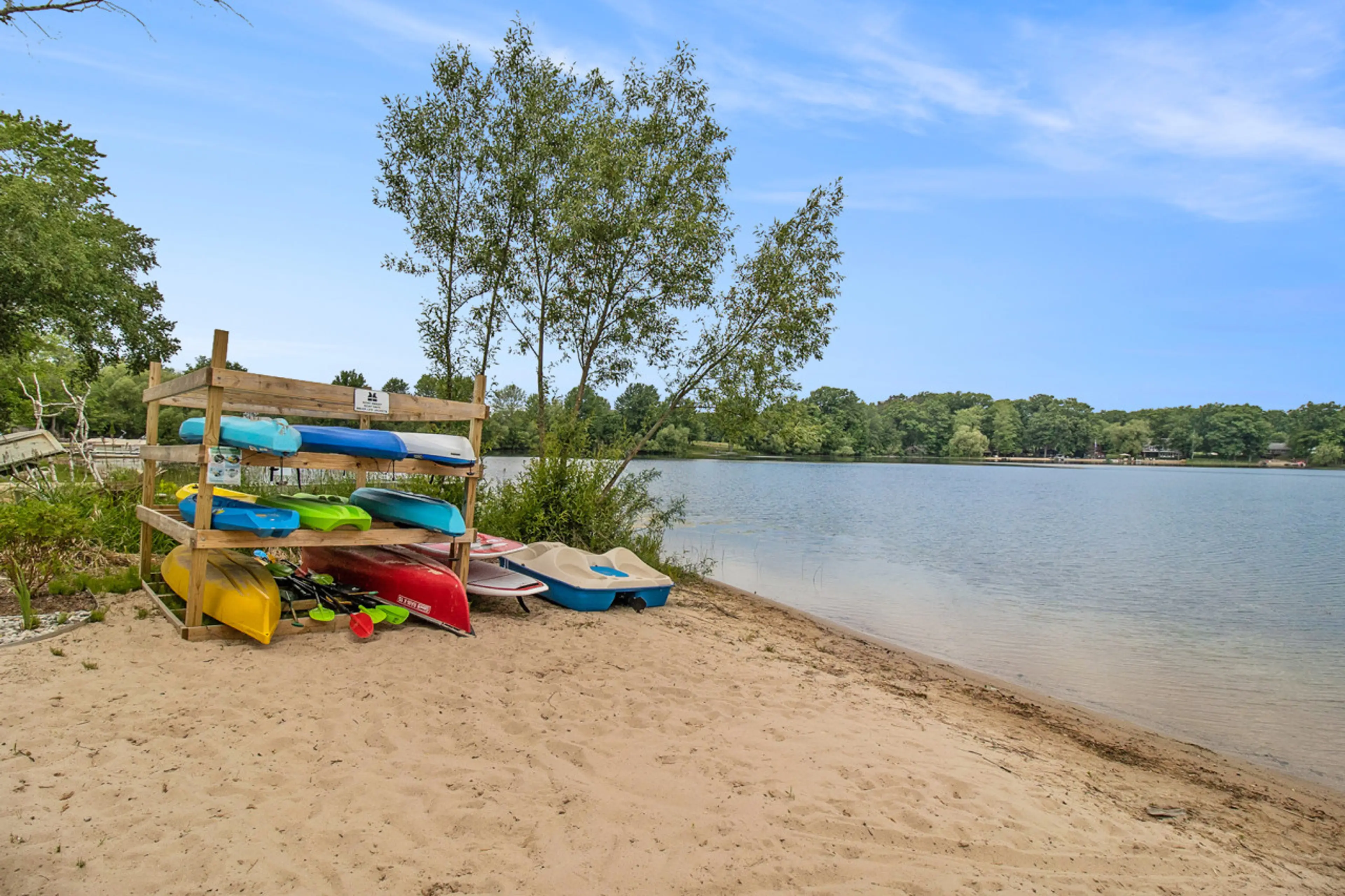 Stunning 5 bed / 3.5 bath Lake House. This 4,700 SF home, located on a quiet street, sits on a double lot with over 200 feet of private Chief Lake frontage and its own sandy beach area. Spend the day on the water—the home is fully equipped with 5 adult kayaks, 4 youth kayaks, a canoe, 2 “Great Lakes...