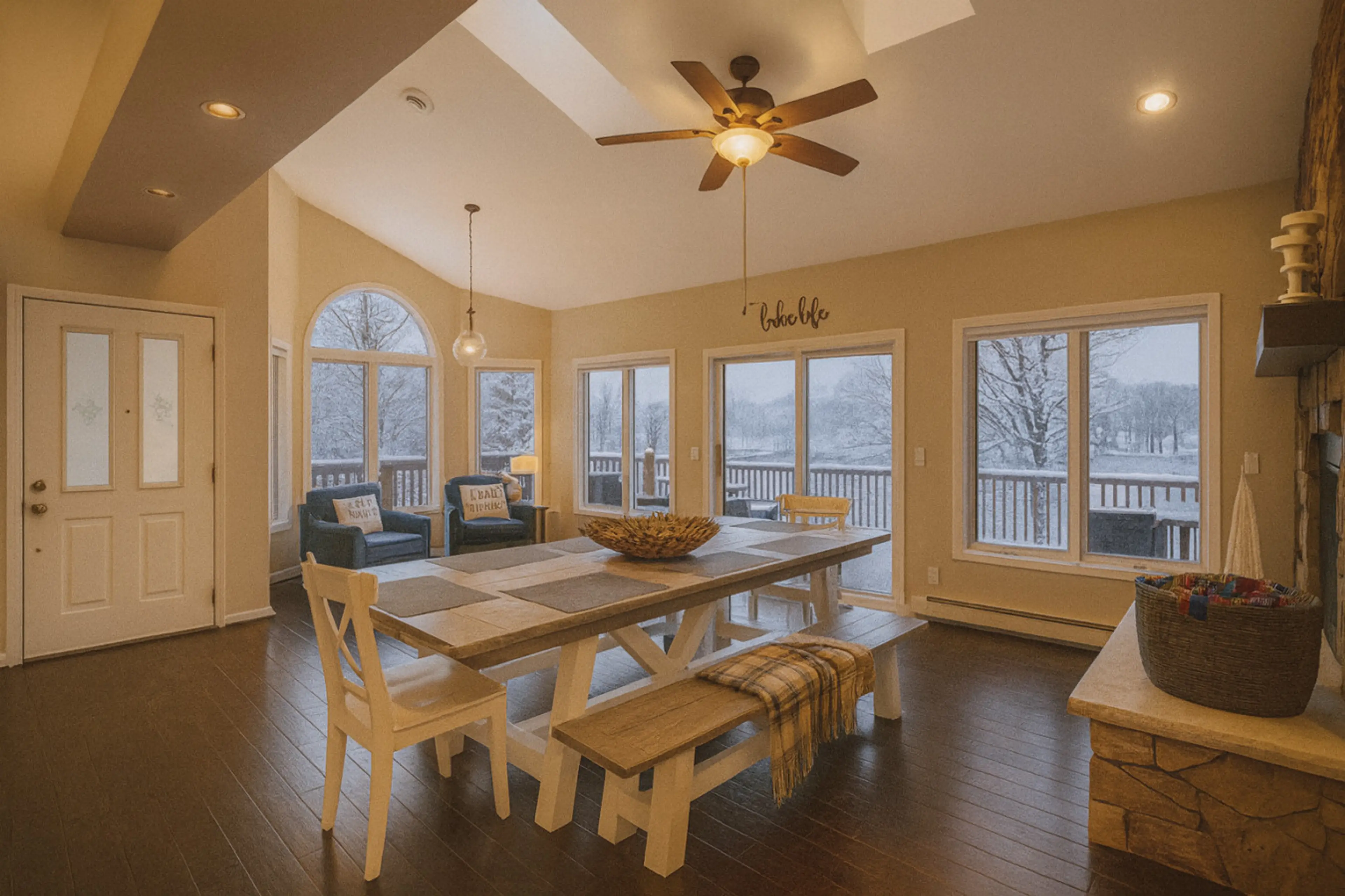 We loved this large, family-friendly and group-ready property. It is perfectly situated on a great all sports lake and comes with kayaks and boats to use. The property management was very helpful and responsive. We had three families and everyone had a place to sleep, eat and relax!